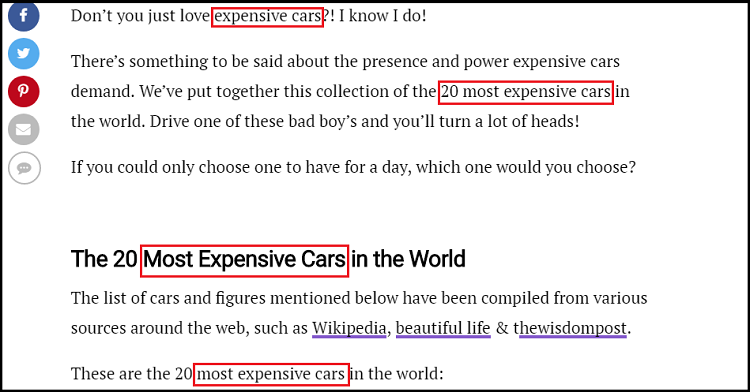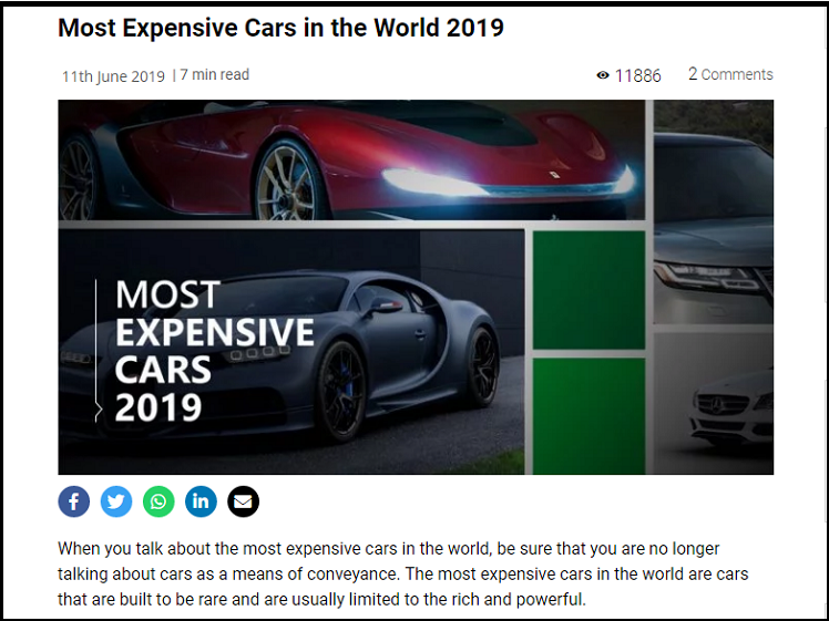 And the hint? The keyword/search term “most expensive cars” appears in the title.