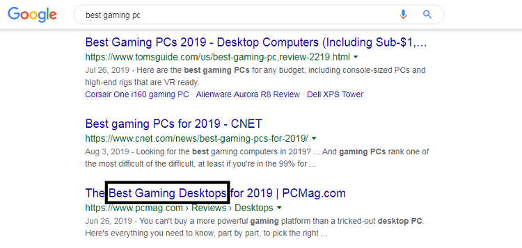 A result with a title best gaming desktop can still rank high on Google as seen below: